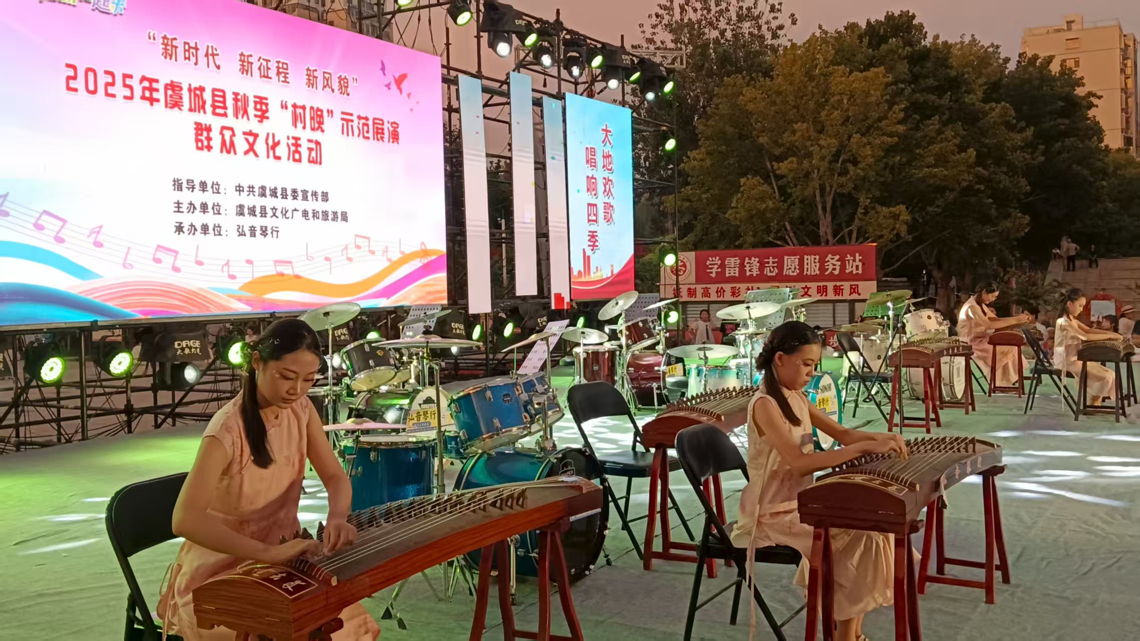 新农村融媒河南讯(记者:王温轩)2025年8月12日晚,虞城县木兰文化广场灯火璀璨、乐声飞扬,“新时代 新征程 新风貌”2025年虞城县秋季“村晚”示范展示群众文化活动在此精彩上演。活动由中共虞城县委宣传部指导,虞城县文化广电和旅游局主办,弘音琴行承办,为现场观众献上了一场充满青春活力的音乐盛宴。