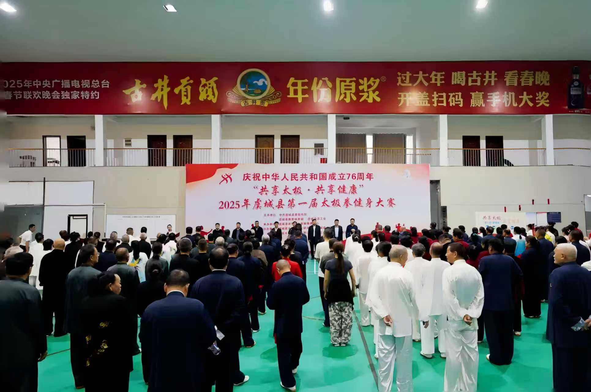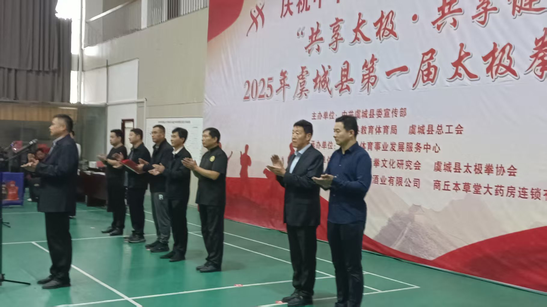 新农村融媒网 河南讯(记者:王温轩)为庆祝中华人民共和国成立76周年,丰富群众文化生活,推动全民健身运动深入开展,9月27日,虞城县体育馆内气氛热烈,“共享太极·共享健康”2025年虞城县第一届太极拳健身大赛隆重举行。全县20多支代表队的近300名太极拳爱好者齐聚一堂,以武会友,共同演绎了一场传统韵味与现代竞技精神相融合的体育文化盛宴。