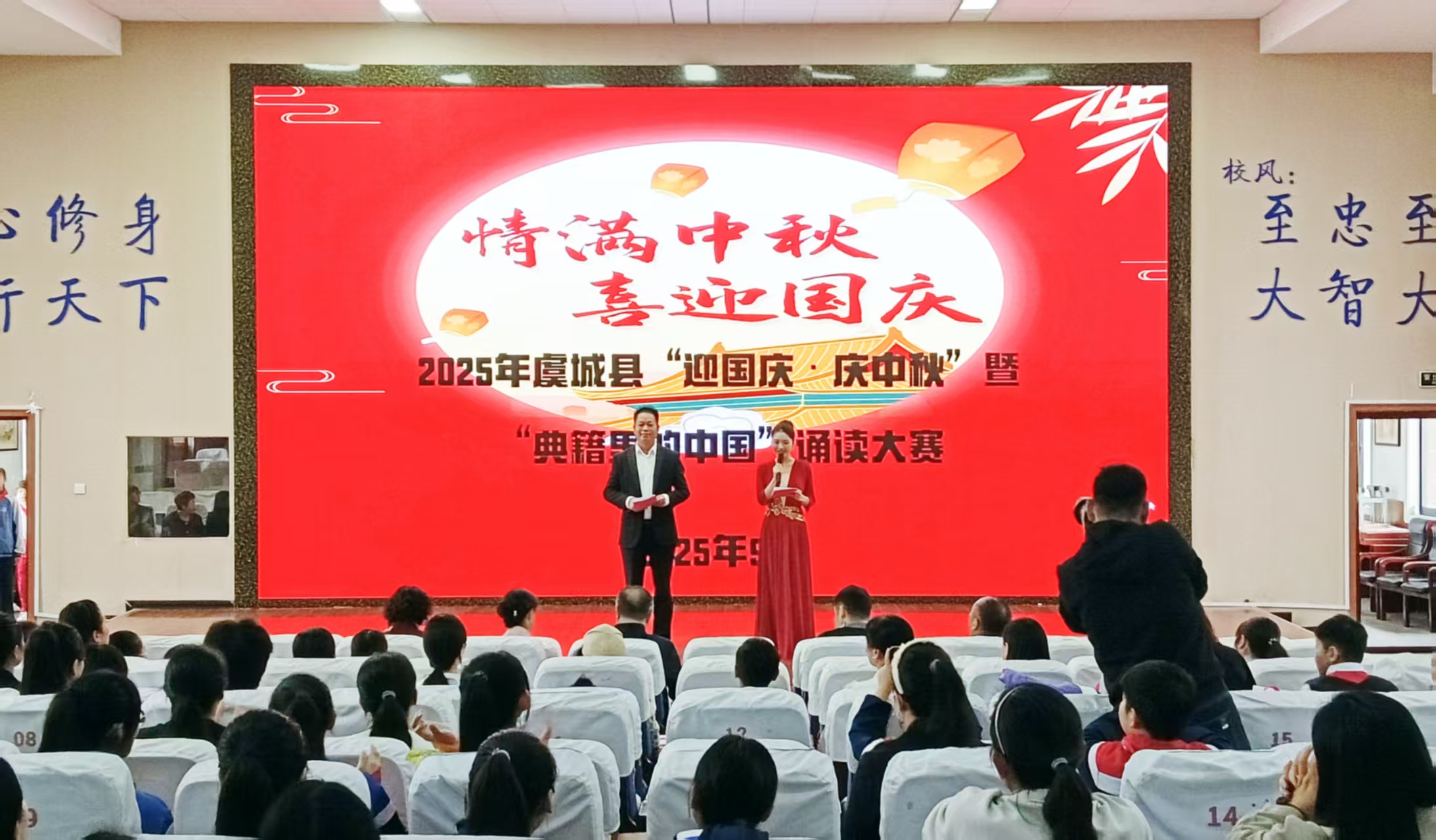 新农村融媒网河南讯(记者:王温轩)为庆祝中华人民共和国成立76周年,丰富群众文化生活,9月28日,虞城县“迎国庆·庆中秋”暨“典籍里的中国”诵读大赛在虞城县第一实验小学成功举办。本次活动由县委宣传部、县教育体育局、县文化广电和旅游局、县融媒体中心主办,县新闻出版局、县新华书店承办。