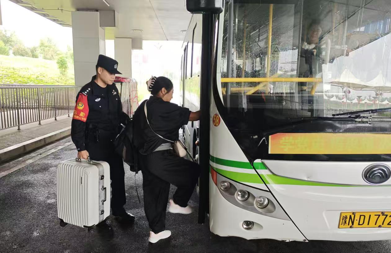 “大姐,等下到商丘站我们已经跟司机师傅交代好了,会专门提醒您下车,路上照顾好老人和孩子!”发车前,冯新月再次上前叮嘱。公交车缓缓驶离,车窗内,女旅客抱着逐渐安静的孩子,隔着雨雾向民警挥手致谢,眼神里满是安心与感激。