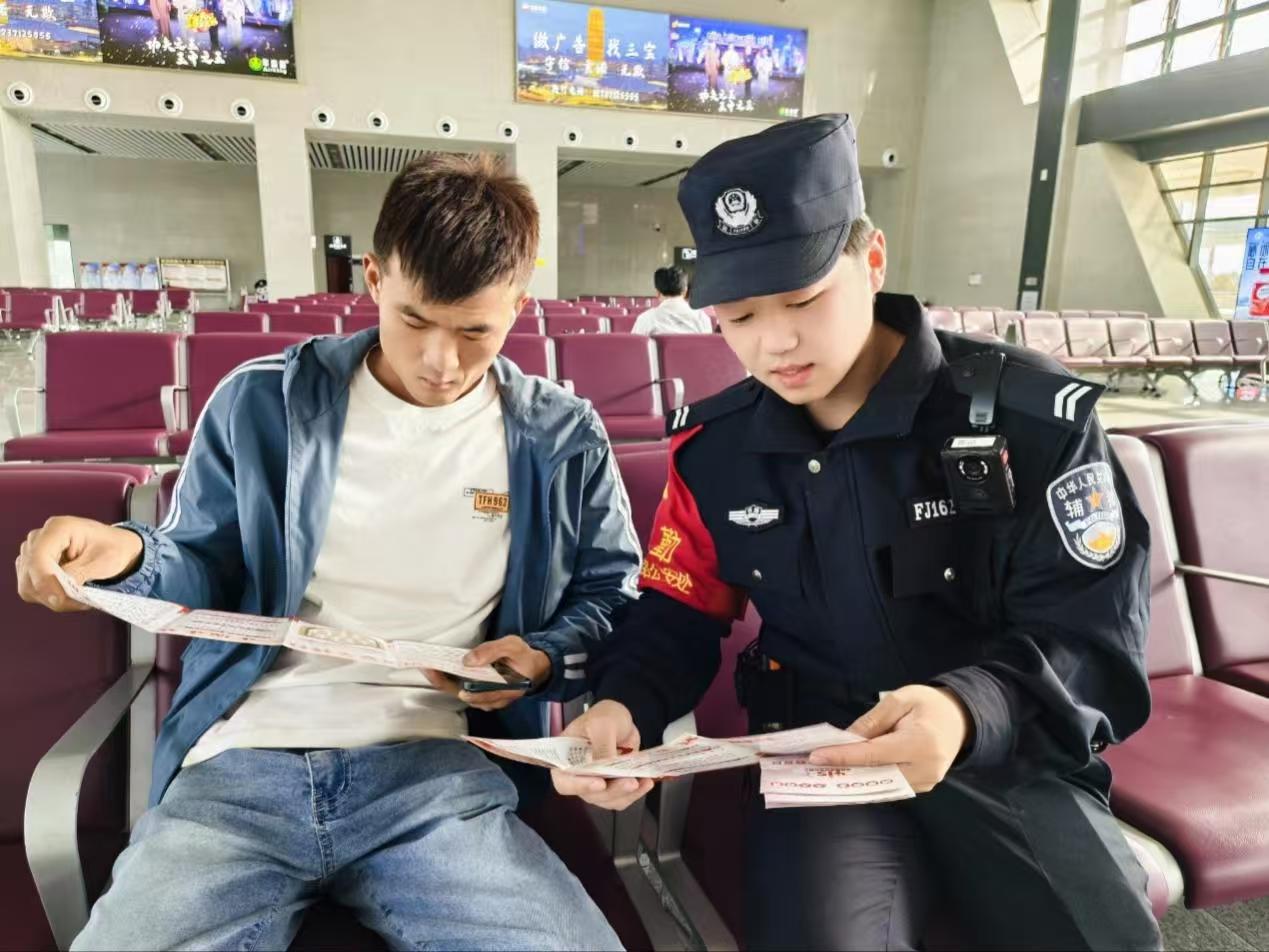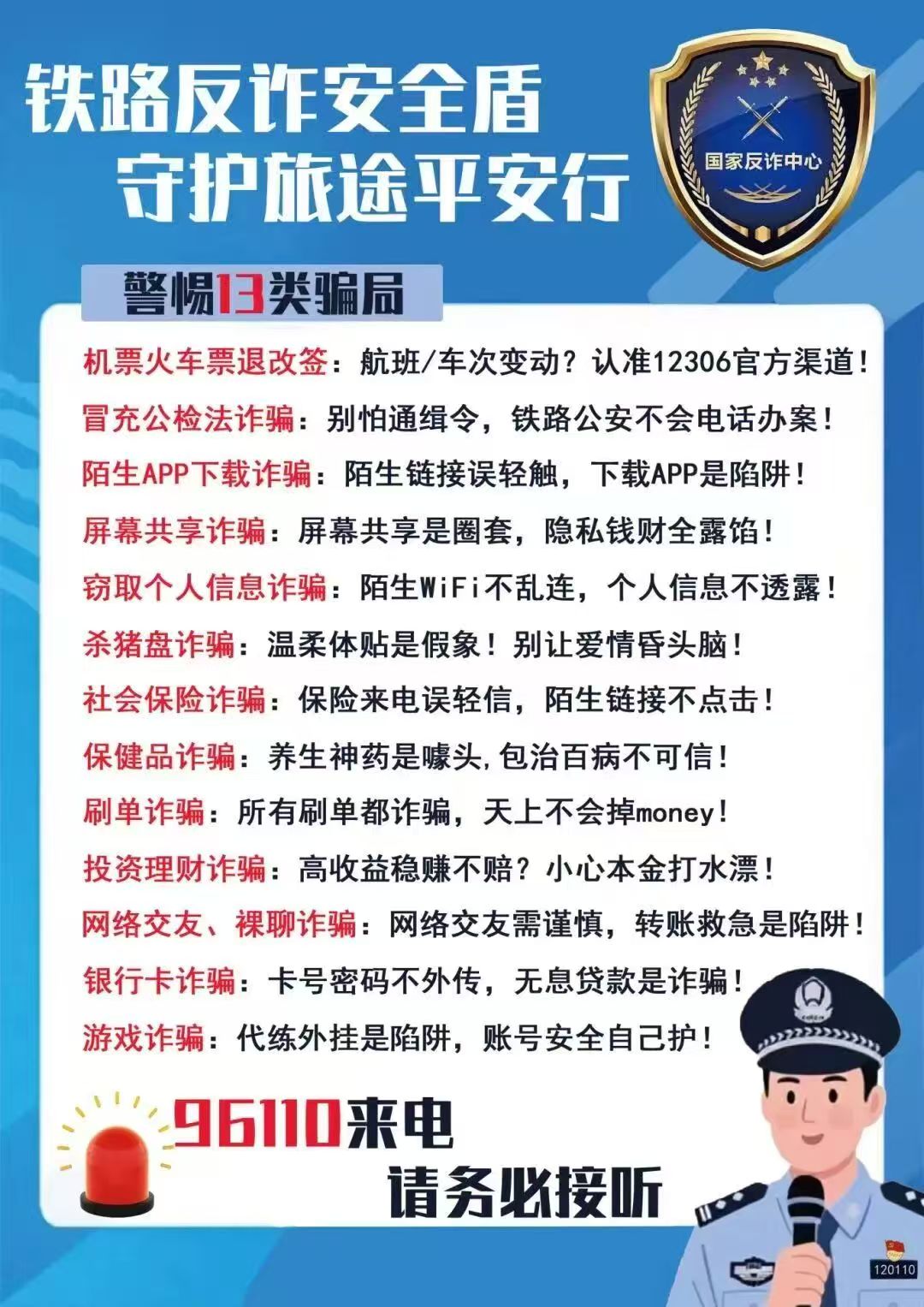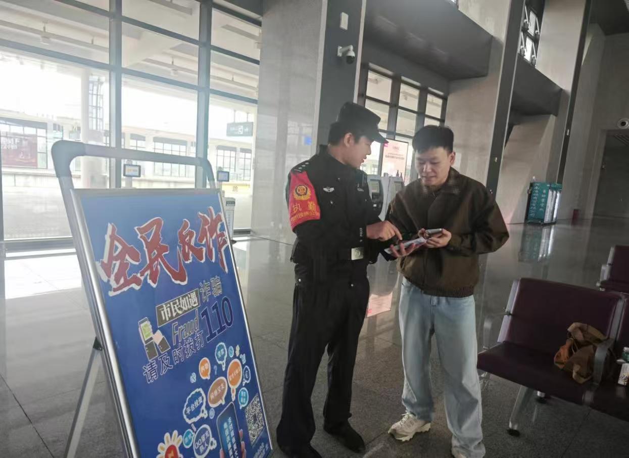 针对学生、老年人、务工人员等易受骗群体,民警开展精准宣传与耐心讲解,指导他们下载并安装“国家反诈中心”官方APP,详细介绍其诈骗预警与拦截功能。一声声温馨提醒,一份份防骗指南,承载着铁路公安对旅客财产安全的深切关怀。
