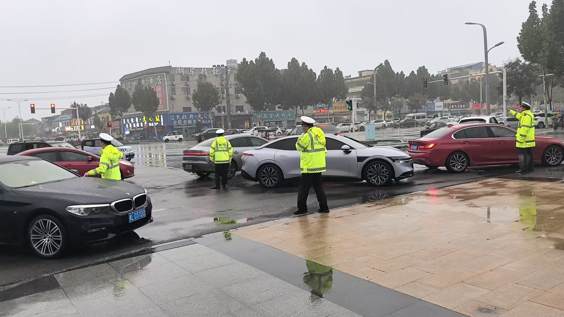 新农村融媒网河南讯(记者 马世民 周克影 通讯员袁飞 王宝玉)截止10月4日晚,虽然国庆中秋“双节”假期已经过半,但我市连续出现小到中雨天气,一直下个不停,雨天路滑,视线较差,降雨给过往车辆和行人带来了很大的安全隐患,交通管理工作的难度和压力也随之增大,商丘市公安局交警支队各大队民辅警冒雨坚守执勤一线,及时掌控路面情况,加强路面管控力度,全力以赴做好国庆中秋“双节”出行“守路人”,保障群众出行平安。